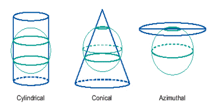 Three classes of map projections